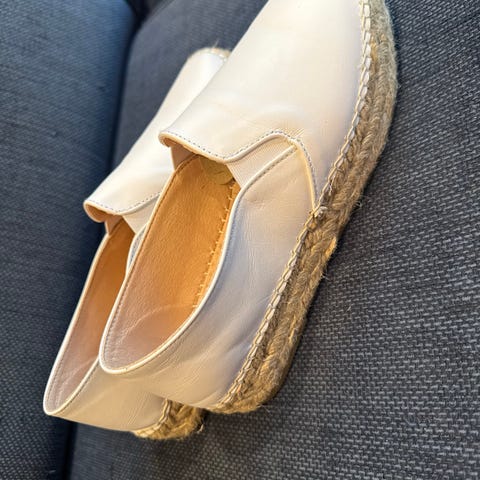Selger mine Espadrillos dame semsket skinn gul str 40 . Skoene har et flettet mønster i semsket skinn og gir et teksturert utseende. Egnet for hverdagsbruk. Kan sendes i post eller hentes i oslo