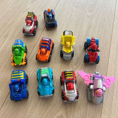 Paw Patrol lekebiler og helikopter med tilhørende figurer. Kjøp settet med Chase, Marshall og Rocky til en god samlepris! Pent brukt, noe slitasje, men ingen feil/mangler:-)
