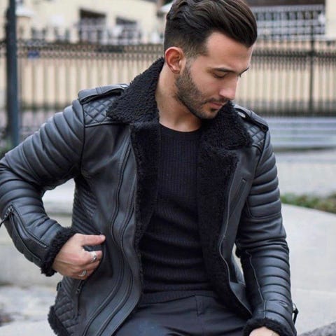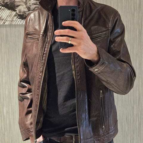 Brun skinn vinterjakke herre M