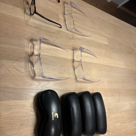 Oakley solbriller for unisex med gjennomsiktig ramme og lilla glass. Har brukt dem noen par ganger ellers har dem vært lite og pent brukt i mitt eie. Kan sende flere bilder av brillen hvis det er ønskelig.