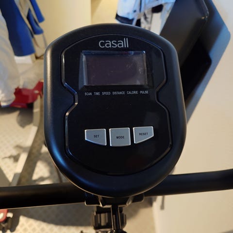 Abilica treningssykkel i grå og svart farge. Utstyrt med justerbart sete og motstandskontroll for variert trening. Har digitalt display som viser treningsdata. Pedaler med reimer for sikker fotplassering. Passer for hjemmebruk.