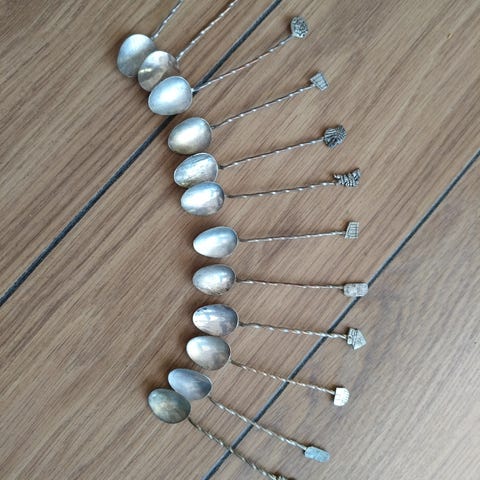 Sølvplett 16 stk kaffeskje fra Magnus Aase/Th. Olsen 12cm. Selges samlet for 800kr.