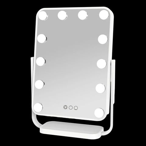 Nesten nytt NOOA Glam Hollywood sminkespeil med LED-lys – justerbare farger (varm, kald, naturlig) for perfekt sminke. Kan også lade telefonen. Selges for 1 200 kr
