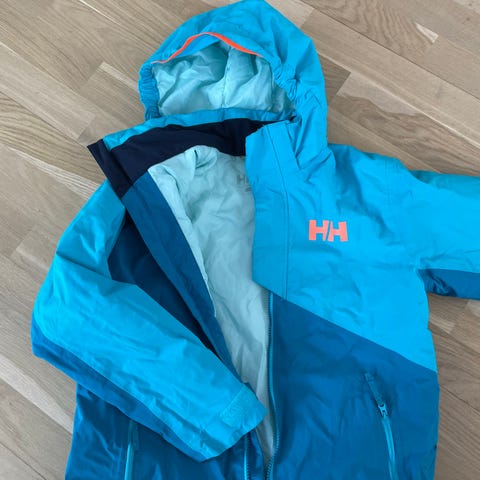 Helly Hansen jakke til alpin i størrelse 164/ Junior. ( liten i størrelsen) Hvit. Jakken er unisex og egnet for å bruke til å stå på ski i. Den har hette og lukkes med glidelås og knapper. Har snøstopper og lomme i arm til heiskort.