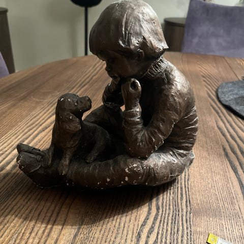 Håndlaget dekorfigur formet som et dyr, laget av flettet naturmateriale i brunfarge. Figuren er dekorativ og kan brukes som pynt i hjemmet eller på kontoret.