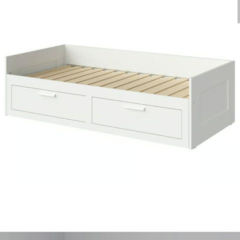 -Link til produktet på Ikea: https://www.ikea.com/no/no/p/brimnes-dagseng-med-2-skuffer-2-madrasser-hvit-afjaell-medium-s39521160/
