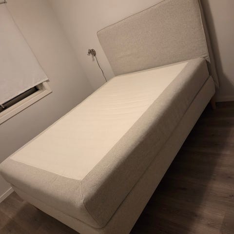 I god stand, noen flekker på selve sengen, men vi har alltid brukt overtrekk. Flekkene kan trolig fjernes.