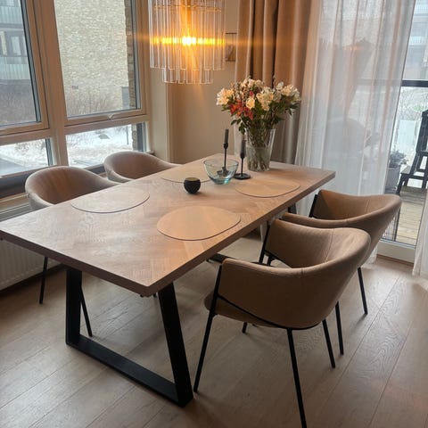Spesiallaget bordplate i laminat med sorte føtter i stål. Ord pris 18 000kr