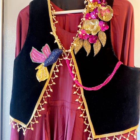 OBS! Siden disse er sydd for hånd i Kurdistan er ikke størrelsene eksakte, lengde og midje er målt så godt så mulig (for kjole og jakke).
