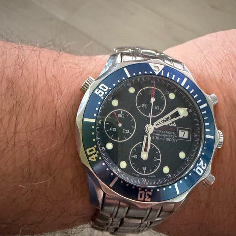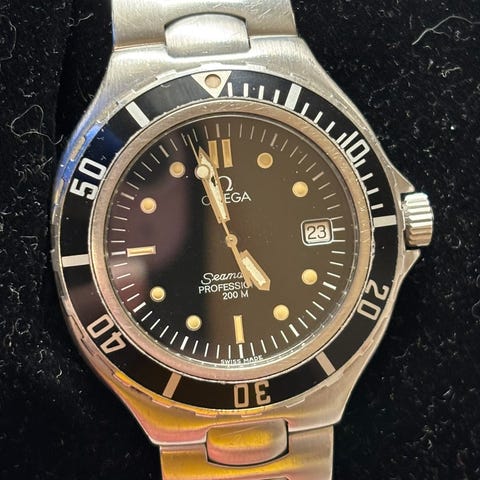 Selger en Omega Seamaster Professional 300M, ref. 2583.80. Klokken er godt brukt og har riper og merker på kasse og lenke samt skade på festet, men går som den skal og er klar for mange nye år på håndleddet.