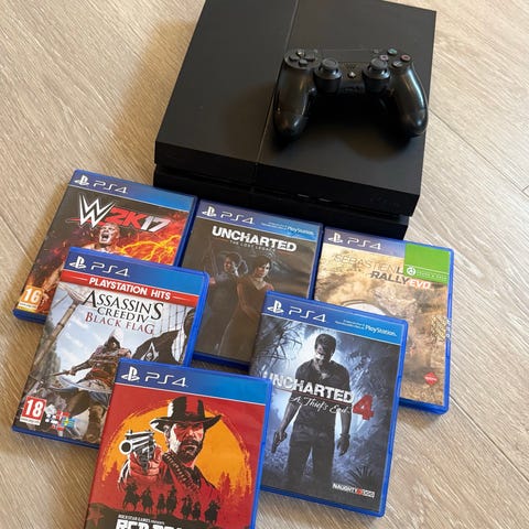 Sony Playstation 4 konsoll i hvit farge. Spillkonsoll med tilhørende 1 original kontroller. 500 gb.