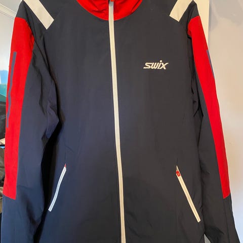 Lys blå Swix-jakke, dame, str M. Brukt, og en flekk under ene armen.Ingen skader/hull