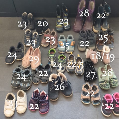 Størrelsene er satt i rekkefølge, hvor 27 er fremderst å 29 er bakerst.
