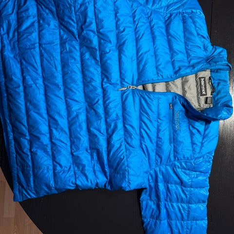 Kul og behagelig jakke som aldri er blitt brukt pga feil størrelse. Har ikke merkelapp. Hette og rygg i elastisk materiale. Foret front.