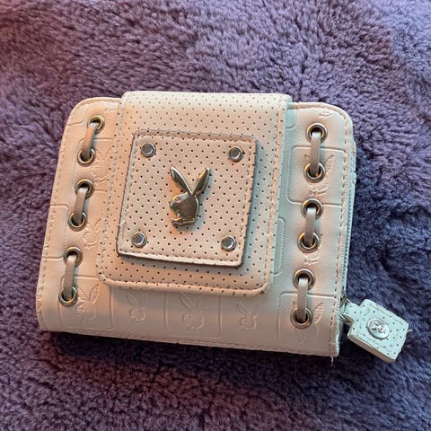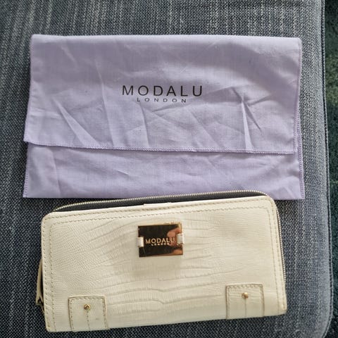 Ny lommebok med mange avdelinger for sedler og kort samt egen avdeling for mynter med glidelås. Ca. 14 x 8 cm. Farge lys beige.