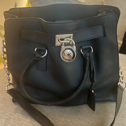 Romslig Michael Kors skulderveske/tote i lær. Vesken har en dyp blå farge. Innvendig finnes flere lommer, inkludert en egen lomme for PC. Vesken har noen få små bruksmerker, men er i god stand. Perfekt som veske til skole eller jobb. Kan hentes i Drammen eller sendes med Posten.