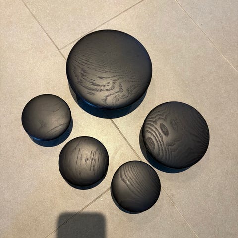 Muuto knagger laget i svart tre. Settet består av flere knagger med ulik størrelse, egnet for oppheng av klær og tilbehør i hjem eller kontor.