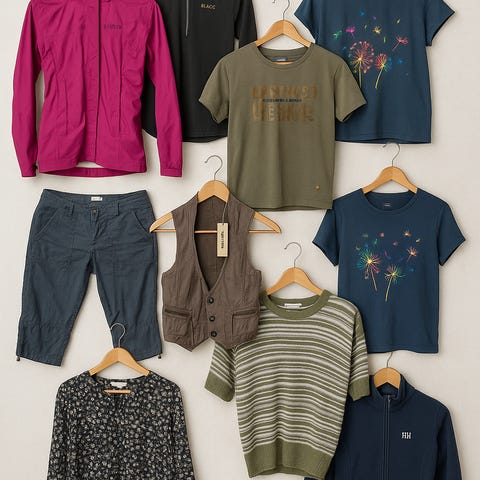Jeg har alt for mye klær og har ryddet ut noe å satt sammen en pakke. Dette er noe av det den inneholder.