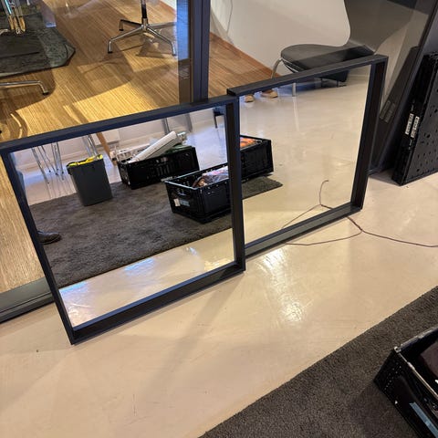 IKEA speil med svart metallramme og oppbevaringshylle