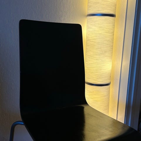4 stk håndvevde rotting-stoler. Pent brukt. Pris per stk.