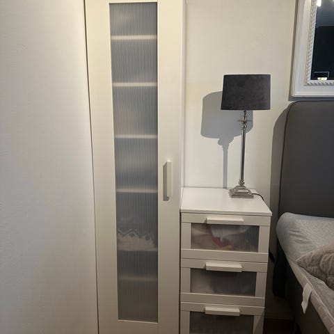 Helfigurspeilet viser deg hele antrekket fra topp til tå. Det får badet til å se større ut, og inne i skapet finner du romslig oppbevaring til alle håndklærne og skjønnhetsproduktene dine. Har 1 gjen av disse skapene som er helt like. 1000kr pr skap. Må hentes av kjøper