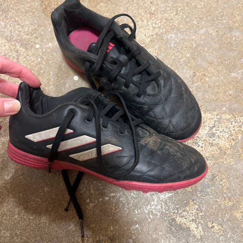Adidas fotballsko i rød og svart farge. Skoene har knotter under sålen for bruk på gressbaner. Passer for fotballspillere som trenger sko med god grep og komfort.