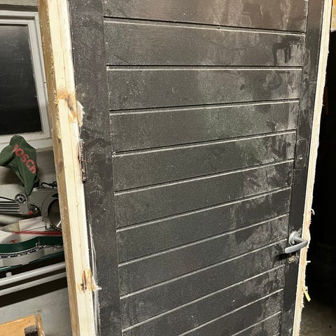 Ene tredøren har hull nederst fordi den også er brukt til bad.