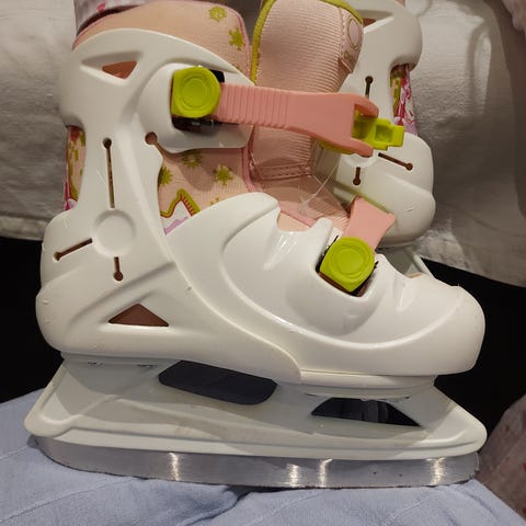 Graf Ishockeyskøyter for barn i størrelse 31-34. Skøytene har hvit og lilla farge. Varme og gode og lette å justere fra sko Nummer 31-34. Sitter veldig godt på foten. Få bruksmerker