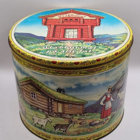 Reklameboks, gaveeske for kjeks eller småting, dekorasjon