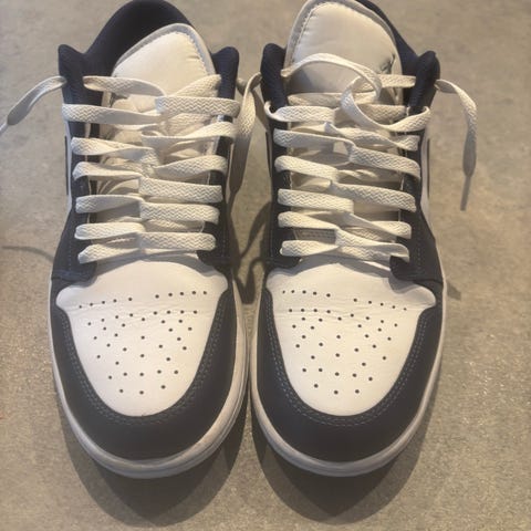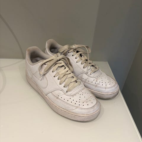 Nike Sneakers joggesko i størrelse 44. Skoene er hvite med grønne detaljer og har snøring. Egnet for daglig bruk og ulike aktiviteter. Så vidt brukt