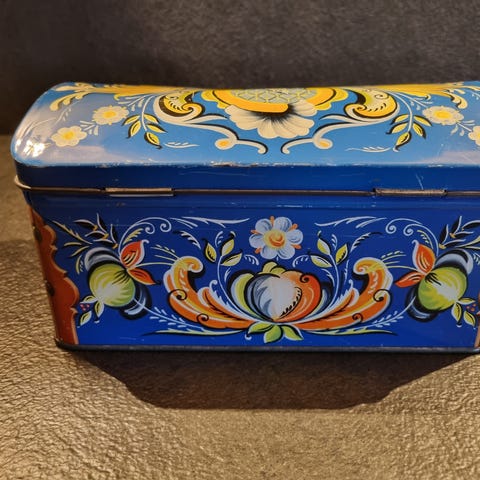 Dette skrinet viser tydelig norsk etterkrigsdesign og folkekunstinspirert juledekor, og er svært populært blant samlere i dag.