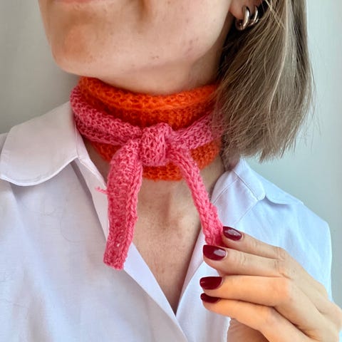 Rosa Sophie scarf strikket i den største størrelsen. Strikket i Sunday og kid silk mohair fra drops