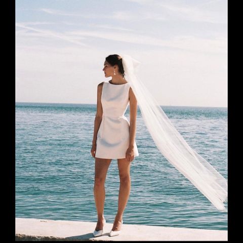 Modellen heter Maria. Stoffet er så mykt, og litt "tungt", så det faller fint. Lengden er til ca midt på leggen. Perfekt som second dress eller hvis du skal gifte deg på rådhuset for eksempel :)