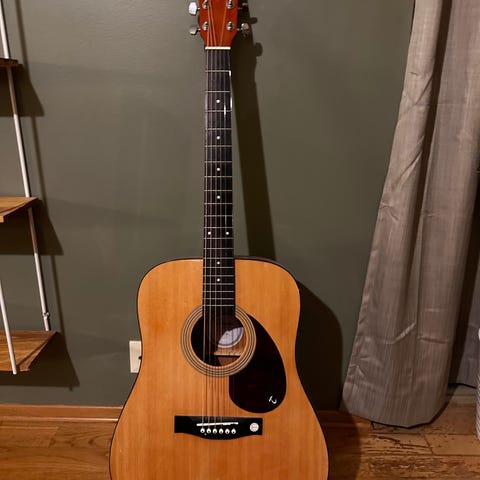 Ostfold akustisk gitar i svart farge. Gitaren har tradisjonelt design og er egnet for akustisk spilling. Nesten ubrukt bare stått i kjelleren