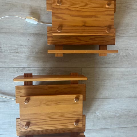 Selger to vegglamper i furu av den norske produsenten Høvik Lys, designet av Gunnar Næss.