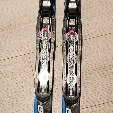 Madshus langrennski med staver. Skiene er ca 2 m og stavene er 150cm.