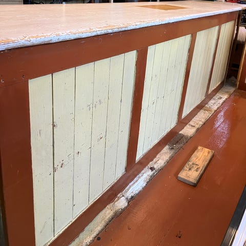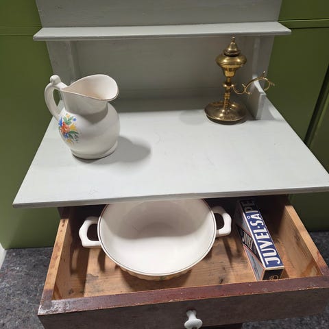 Gammelt tannlegeskap intakt med en del utstyr