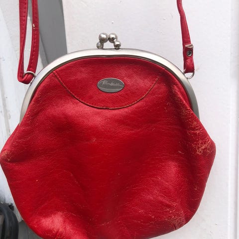 Vintage stoffveske i rødrutete fra Kongsberg Margarinfabrikk