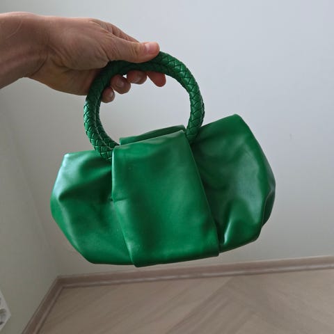 Høyde inkl håndtak 46 cm ( usikker på om håndtak er av skinn)