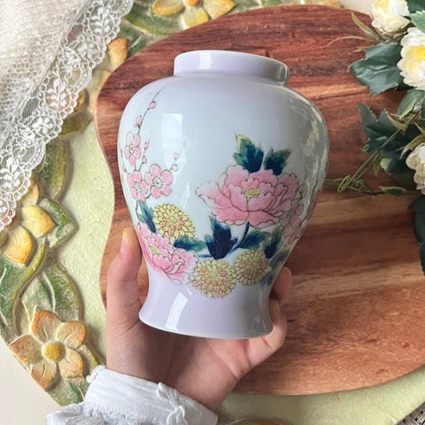 🌿Vintage japansk porselensvase – flott blomsterdekor