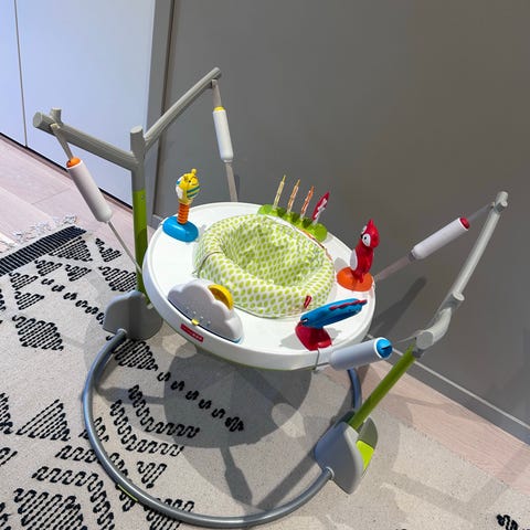 Skip hop Explore and more aktivitetssenter med sete til baby med mange gøye leker. Justerbar benstøtte gjør at leken vokser med dem og de kan både sitte, stå og hoppe i den. Lekene kan enkelt tas av og på, flyttes rundt på og rengjøres. Setetrekket kan enkelt tas av og vaskes i maskin. Stødig og veldig bruksvennlig. Praktisk når du trenger å få gjort noe og vil holde baby trygg og underholdt. Se bilder for flere bruksområder. Fremstår nesten som ny. Kan hentes på Søreide i Bergen. Veiledende nypris er 2349kr.