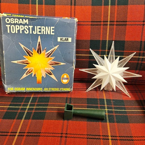 Retro / vintage Osram julestjerne / Toppstjerne i original eske med juletrefeste.