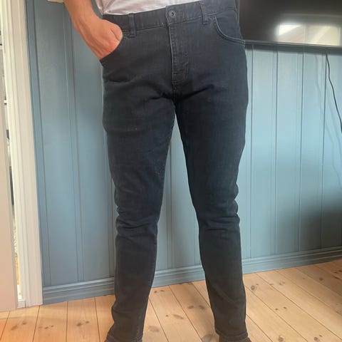 Lee herre jeans i blå denim, størrelse M med midjemål W34. Jeansene er laget i slitesterkt denimstoff og har en klassisk passform.