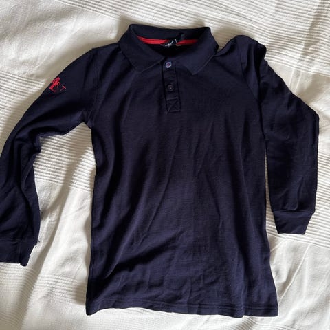 WoolLand ull genser for gutt i størrelse 146/152. Genseren er blå og laget av merinoull. Den har langermet design med krage og knappestolpe.