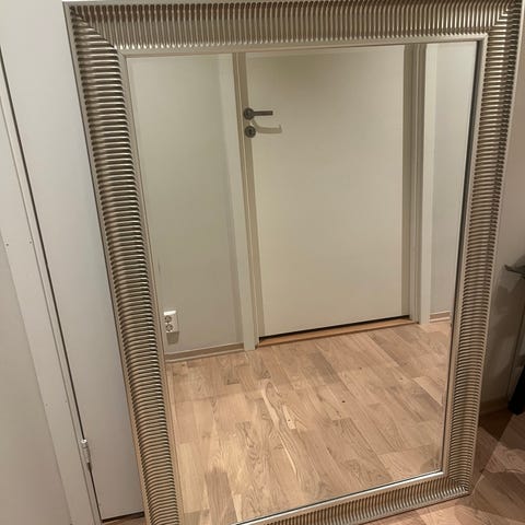 Dette elegante speilet fra Ikea, modellen Songe, har en slående sølvramme som tilfører en luksuriøs og sofistikert følelse til enhver innredning. Med en total størrelse på 130 cm i bredde og 90 cm i høyde, er det ideelt for å skape et visuelt romsligere miljø.