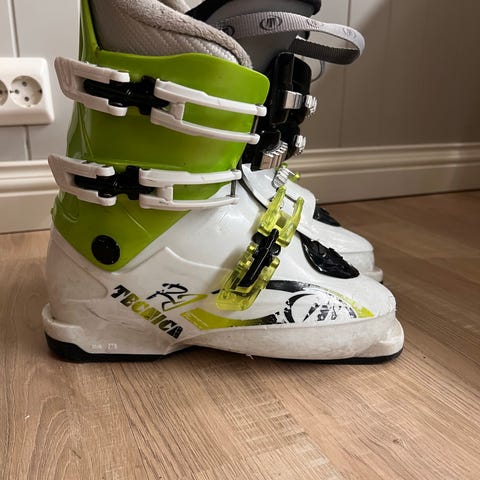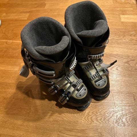 Dalbello Speed 3 alpinstøvler i størrelse 267 NM selges. Støvlene har svart og hvit farge med røde detaljer.