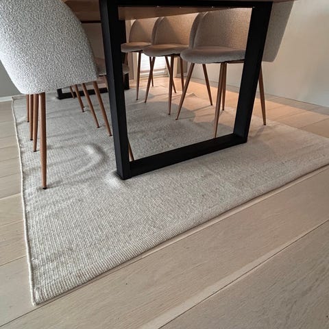 Selger et stort rundt gulvteppe i beigr. Kun brukt noen uker men ble for stort hvor det var tenkt.