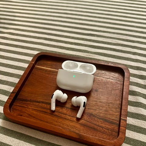 Selger brukte Apple AirPods Pro 2. generasjon (2023-modell).