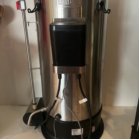 Grainfather Connect bryggeutstyr i rustfritt stål. Utstyrt med digital kontrollpanel for temperaturstyring. Inkluderer slanger og tilkoblinger for bryggeprosessen. Egnet for hjemmebrygging av øl.