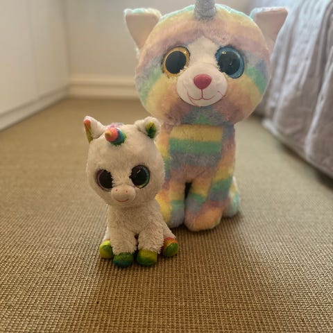 Kaninørene er avtagbare og festes med magnet. Kun stått til pynt, ikke lekt med.